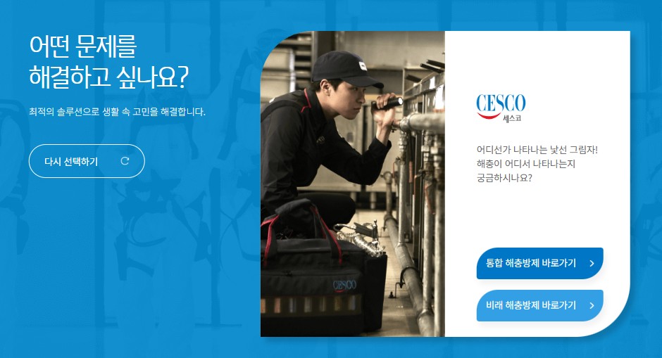 1) 세스코 공식 홈페이지(홈케어 메뉴) 또는 고객센터(☎1588-3360)로 방문 진단 예약